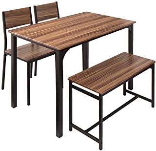 ダイニングセット ダイニングテーブルセット ダイニングテーブル ダイニングチェア チェア リビング おしゃれ 食卓 食卓セット (4点セット, ブラウン) テーブル 2021.11.15 リコメン堂 ダイニング4点セット 4人掛け ダイニングテーブルセット 110cm幅 ダイニングテーブル ダイニング ダイニングチェア ダイニングベンチ セット ダイニングセット テーブル チェア2脚 (4点セット, ブラウン)・すっきりと無駄を省いたデザインでシンプルな上品さ・豊かな木目模様ながら、PVCコーティングでお手入れも簡単・テーブル脚はマットな質感のブラックスチールで木目の天板が映えるモダンなデザイン・どんなシーンでも寄り添うダイニング