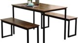 HOMOOI ダイニングテーブルセット 大理石柄 クッション付き収納式ベンチ 幅110cm (スチールテーブル×1ベンチ×2)4人掛けテーブル