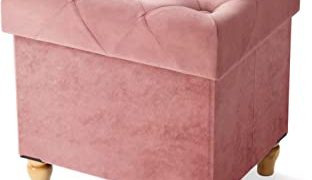 Nicehill 収納スツール オットマン 脚付き 折りたたみ式 ストレージチェア ボックススツール 椅子 収納 踏み台 フットレスト ベルベット製 リビング/玄関/寝室に適用 耐荷重200KG 380*320*390mm (ピンク)
